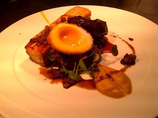 Outdoor Reared Dorset Pork Belly, Pork Cheek with Roast Pineapple, Duck Egg and Treacle